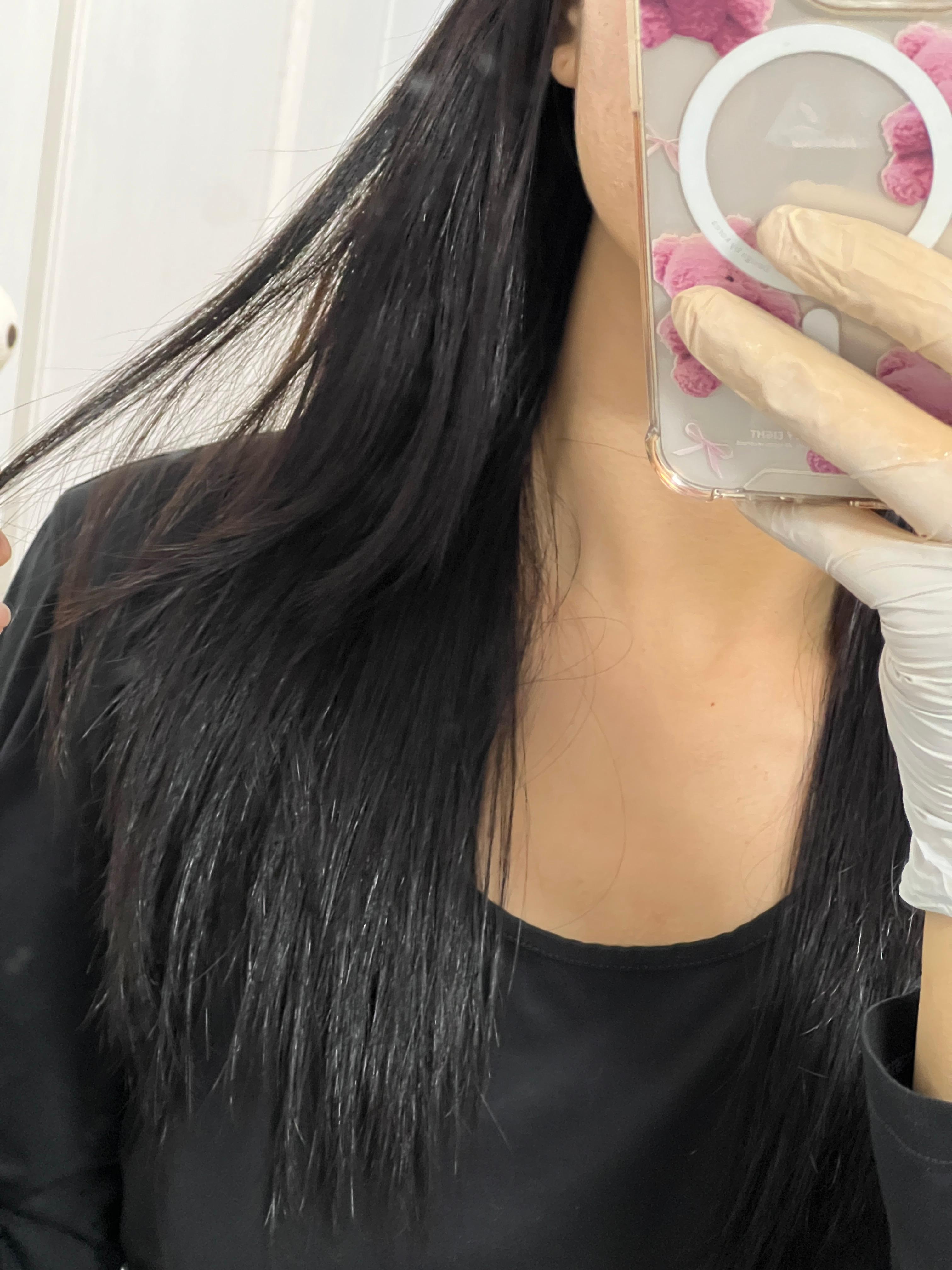 머리를 말리고 나니 처음엔 티가 안 났다. 하지만 아침에 부모님, 친구들에게 물어보니 다들 “초코브라운” 같다고 말함! 거울로 다시 보니 정말 톤이 부드럽게 빠졌고, 전체적으로 블랙에서 자연스러운 브라운빛이 감돌았다.