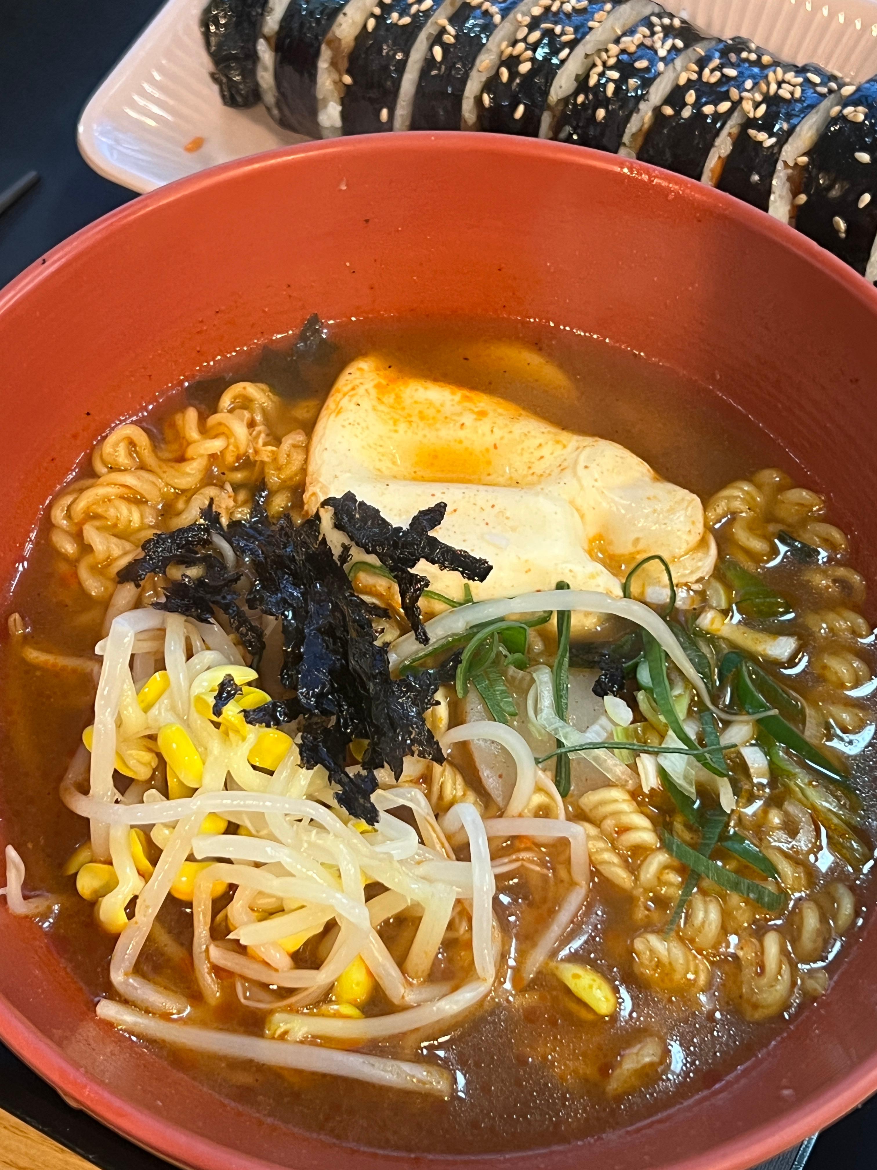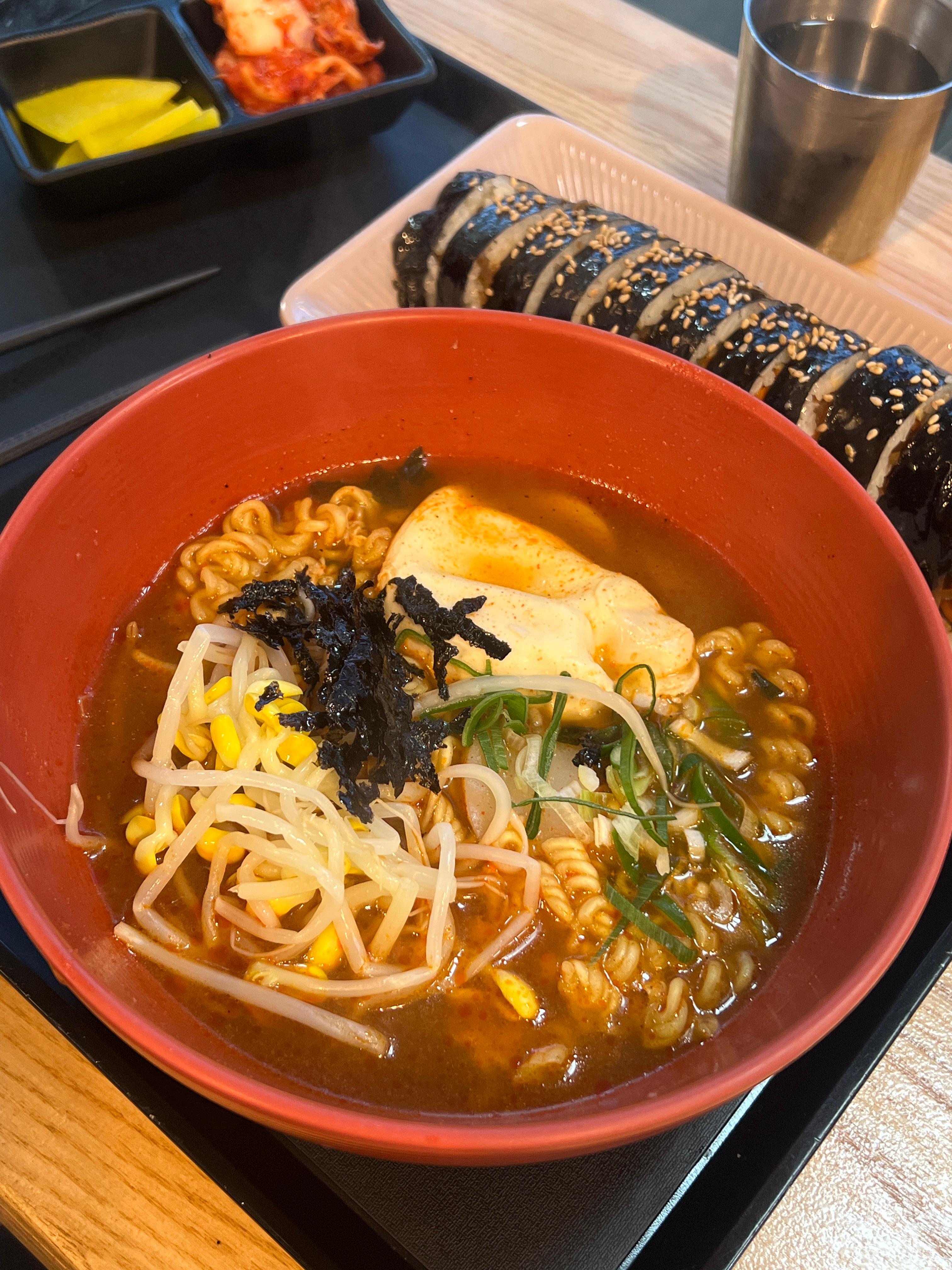 요건 조금 매콤한 국물라면 느낌. 신라면보다 살짝 더 매운 정도라서 일반인도 충분히 먹을 수 있다. 국물까지 마셔도 괜찮았고, 계란이나 김밥 같은 사이드 메뉴랑 같이 먹으면 훨씬 부드러워짐.